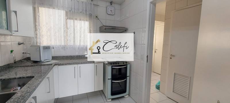 Cozinha ampla surtida de armários planejados com pia em granito, com geladeira, fogão, depurador e gás encanado, área de serviço arejada com dependência de empregado com banheiro podendo ser reversível para uma despensa.