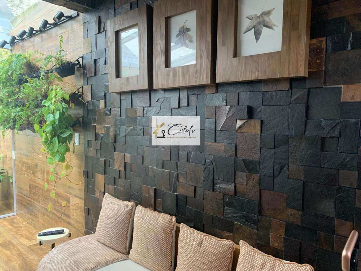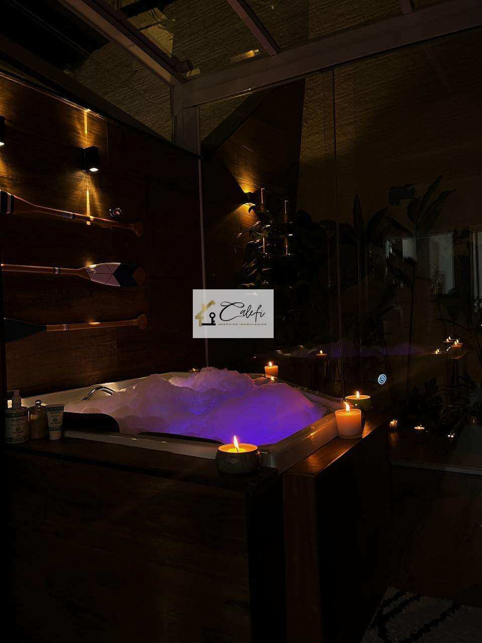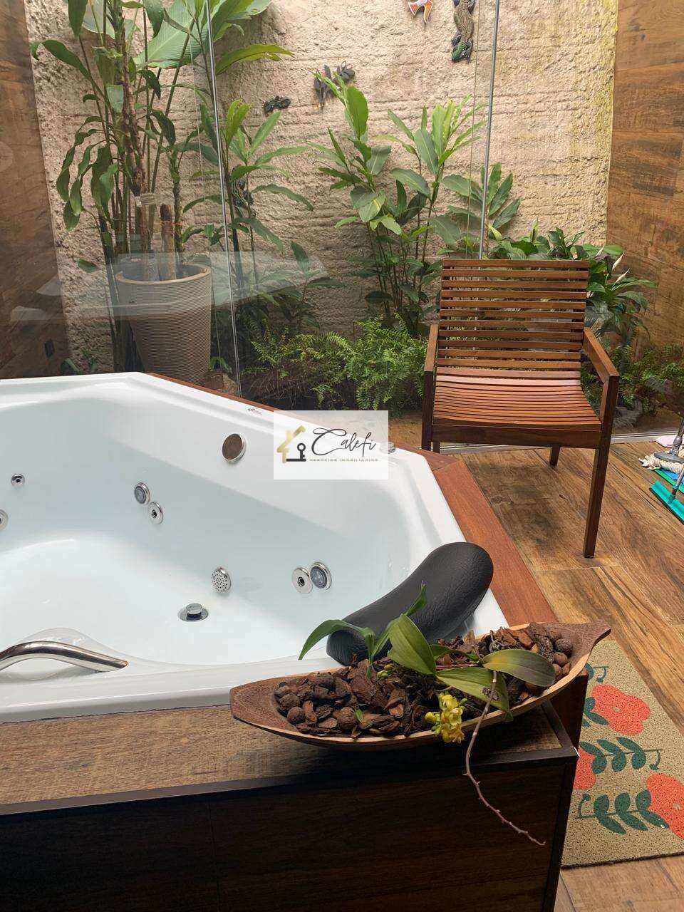 Lareira aconchegante para noites especiais e momentos de tranquilidade; Decoração sofisticada: paredes revestidas com pedras naturais, porcelanato de primeira linha e armários embutidos; Jardim tropical que traz frescor, beleza e natureza;